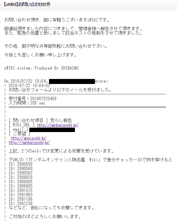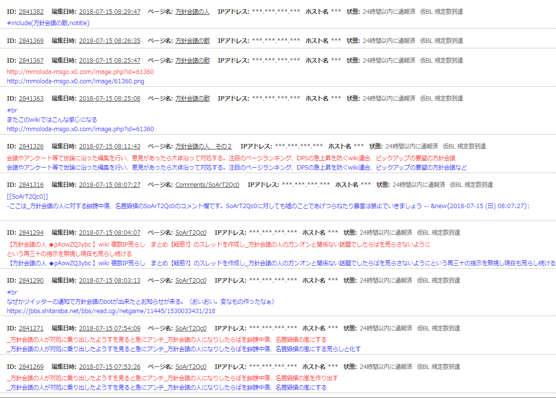 による荒らしが静かになったと思ったら7月22日頃にsWIKI運営から直接ホスト規制が掛かったのね。今日