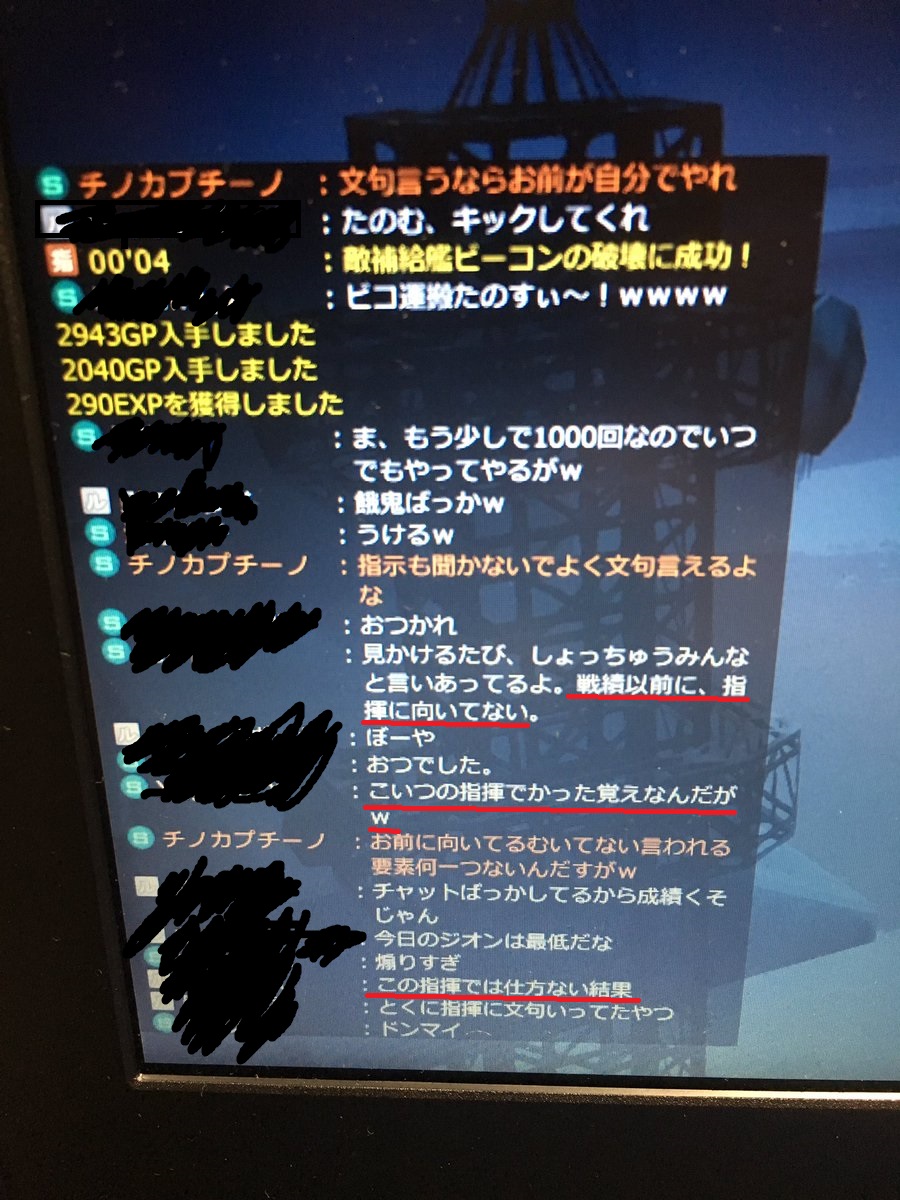 ついに待ちに待った指揮動画がUPされたぞ https://www.youtube.com/watch?v=xFkKTpf0RQ0&feature=youtu.be&a(削除済み) 戦闘中「前でろ」「芋んな」って代理で罵声の連呼。 こいつがどこにいるのか探したら、こいつが一番うしろで芋ってた。 当然、最下位。