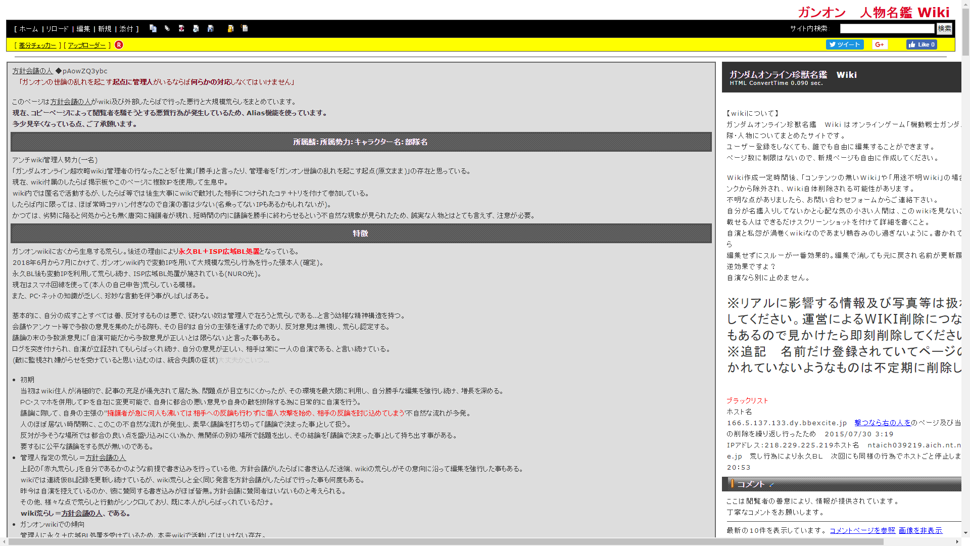 総じて、wiki管理人に対する被害妄想が激しく、自分はwikiの功労者であり、自分に対する反論・批判・攻撃は全て管理人が悪い、という内容