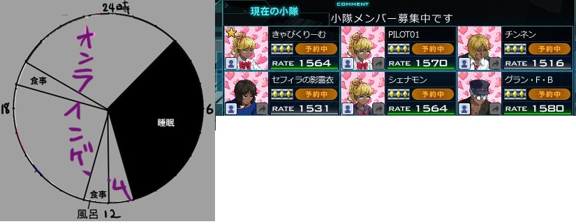 ガンオン女子を見つけて部隊に勧誘する「ガンオン出会い系」プレイも得意。