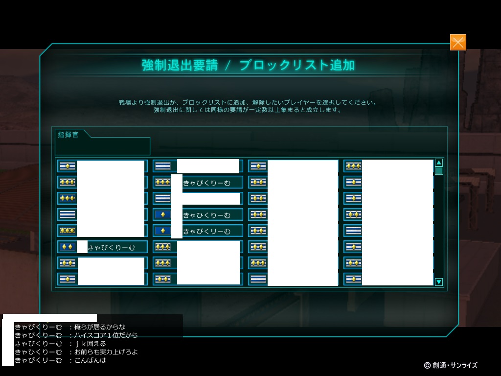 S鯖 ジオン:わたがしII 連邦 キャラ名:きゃぴくりーむ 連邦部隊名:住所特定